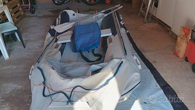 vendo gommone honwave compreso di remi,ruote di alaggio,sacca per equipaggiamento,borsa per trasporto,panca per seduta.lo vendo a soli 250€ per uno scollamento come da foto indicata solo interessati.no perdi tempo.