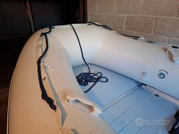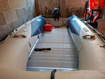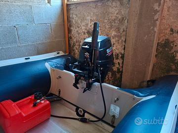 Vendesi gommone Honwave T 40 (metri 3,95) + motore 20 hp Suzuki DF 20 A (entrambi del 2019) con seguente allestimento: -pagliolato in alluminio; -panca / sedile mediano; -borsa grande porta dotazioni da integrare con la panca; -copertura prua con borsa; - coppia pagaie; -tendalino da navigazione in acciaio; -ruote d'alaggio su specchio di poppa; -scaletta in corda; -telo copribattello. Gommone e motore sono stati usati pochissimo e la motivazione della vendita è sostanzialmente per inutilizzo. Il prezzo comprende anche un carrello Unitrailer Jetalu (non frenato) del dicembre 2024, praticamente nuovo.