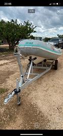 Cedo Gommone griglia di vetroresina con Pilo Teena Centrale cuscini Rhea completa, rifatta, nuova motore 15 cavalli Suzuki, quattro tempi impianto di luci completo, anche se si vuole pescare di notte ecoscandaglio Garmin, carrello non omologato