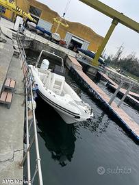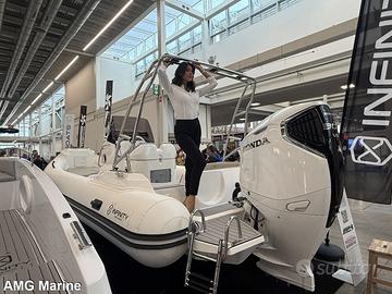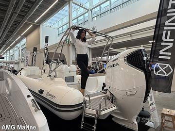 Gommone Infinity Milano R8 Dati tecnici lunghezza mt 7,80 larghezza mt 3.16 pot max 300HP Consolle centrale con locale wc, seduta stand/up con frigo, dinette a poppa con tavolo. prendisole di prua, plancette di poppa. Accessori di serie: verricello elettrico con ancota e catena, impianto elettrico, pannello interruttori, impianto carburante con serbatoio inox 250LT doccia con autoclave e serbatoio 40lt. Tubolari Orca . Il gommone può essere configurato a richiesta del cliente, costruito e assemblato in tutte le sue parti in Italia! Prezzo Listino euro 63.000,00 senza motore. Infinity Milano AMG Marine Concessionaria Ufficiale Bavaria Yachts, Italmar, Romar, Mercury, Suzuki, Conarg Marine, Cresci Rimorchi, Spoleto Rimorchi, Garmin. Via Aurelia 2935 Torreinpietra 0054 Fiumicino Roma Tel