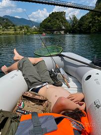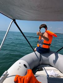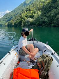 Gommone in perfette condizioni, compreso motore elettrico 12V Boudech 60 Lbs, Tendalino, porta batteria con batteria 100 Ah, remi in alluminio, 4 giubbotti saltaggio. Portata massima 400 kg. A norma iso 6185-1 nmma-abyc, supporto per montaggio motore, custodia batteria, 2 porta canne da pesca su entrambi i lati, sacchetto porta attrezzi, 3 cuscini gonfiabili 4 persone 328 x 145 x 48 cm, accessori inclusi pompa manuale (cod. 68605) e remi in alluminio Vendo causa inutilizzo purtroppo. Possibilità di andare in laghi doce è vietato l'utilizzo di motori a scoppi.
