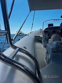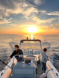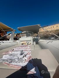 con ombreggianti laterali + chiusura notturna a prua . Si può navigare sino a 35 nodi con il tendalino aperto.