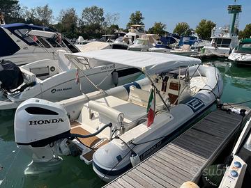 Gommone di grandi prestazioni, vivibilità pari al 26" per la presenza del braket che incrementa la lunghezza interna. Carena progettata da Franco Donno. Vedere prova su You Tube di Maurizio Bulleri. Rimessato sempre al coperto. Tubolari e carena in perfette condizioni, no perdite.