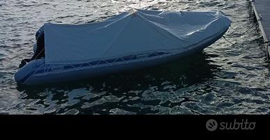 gommone in ottime condizioni motore suzuki df40 4 tempi 40/50hp con 350 ore , con carrello pronto per la revisione periodica.il gommone è pronto al varo con antivegetativa allo scafo e gummapaint nei tubolari appena data . consumi ridottisimi . compresi anche tendalino e copertura completa .Vendo per passaggio a categoria superiore. Nella foto dall'alto si vede la cuscineria completa , il motore che si vede in questa foto èil motore originale che ora è stato cambiato con il suzuki No perditempo. Prezzo leggermente trattabile