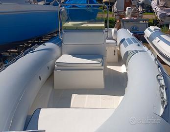 Gommone Joker Boat Coaster 580 in ottime condizioni generali, tubolari senza alcuna perdita, cuscineria completa nuova, carena senza alcuna riparazione, sentina, doccetta, tendalino, serbatoio carburante 80 litri con indicatore di livello, scaletta di risalita, tendalino.