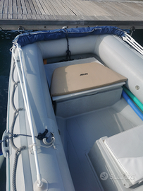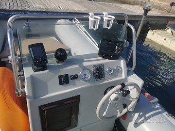 Vendo gommone con motore Suzuki 40/60 del 2018 con tagliandi regolari dimostrabili, consumi irrisori con 300h. Accessoriato di tendalino con prolunghe, telo invernale copri gommone e motore. Bussola, ecoscandaglio Garmin e GPS Lowrance cartografico, impianto elettrico con luci e presa USB, porta canne, dotazione di bordo completa, cuscineria nuova, pompa di sentina, serbatoio benzina 60 L con indicatore livello. Impianto troll mode Suzuki, ottimo per la pesca a traina.