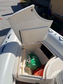 Gommone joker boat modello wide 520 fantastico gommone perfetto in tutto e pronto per la stagione estiva + carrello - Refit totale completo dicembre 2024 - Plancia strumenti completamente nuova firmata joker boat con luci a led attivazione e disattivazione pompa di sentina doccetta luci ecc - Motore yamaha 40 70 2018 183 ore di moto - Luci calpestio a led - Luci sommerse di Poppa - Pompa di sentina - Pompa doccetta con serbatoio 50 litri - Roll Bar in acciaio - Tendalino completo chiusura laterali frontali e posteriore - teak interno e teak su plancette di poppa - impianto stereo con autoradio alpine 4 twiteer 4 woofer subwoofer ed amplificatore - 2 batterie a gel totale 180 ampere - gavoni enormi sia di poppa che di prua - scaletta in acciaio - gps cartografico simrad con ecoscandaglio - Carrello sim trailer revisionato è perfettamente funzionante in tutto tutto perfettamente funzionante pronto a qualsiasi prova tenuto sempre fuori acqua usato solo i tre mesi in estate