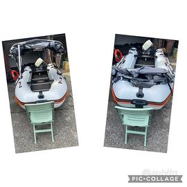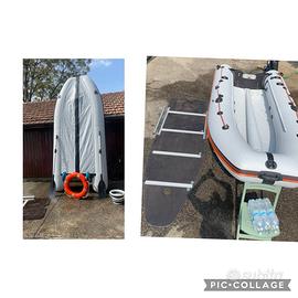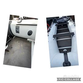 Vendo bellissimo gommone tender smontabile con annesse borse Paiolato in legno da 5 sezioni e 2 tubolari stabilizzanti in alluminio Compreso tendalino chiudibile anche per campeggio Insieme do anche salvagente e scaletta apposita in alluminio Motore EVINRUDE 15 CV con libretto 2 taniche per carburante Altri accessori Prezzo trattabile