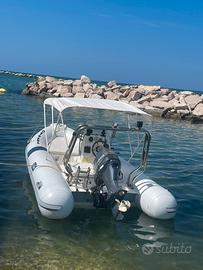 Vendo gommone anno Legar 500 , 5 metri doccietta acqua dolce , radio, ecoscandaglio, etc.. roll bar in acciaio anno scafo 2002 anno motore 2019 Yamaha 40 cv con circa 400 ore, cedo per passaggio di categoria.