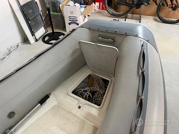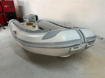 Lomac 350 OK, lungo mt.3,60. Chiglia in vetroresina e tubolari in hyphalon neoprene, non pvc cinese, con remi e ruote alaggio. Tutto in ottime condizioni e senza perdite d'aria. Senza motore Mauro