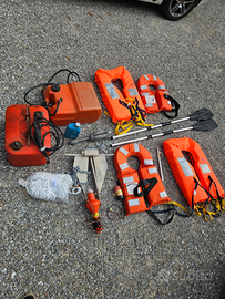 Motore Mariner 25cv 2 tempi corredato di libretto, salvagente ciambella di salvataggio 2 ancore una da sabbia una da massi complete di cima nuova ancora incartata, pompa di sentina , 2 serbatoi , remi in alluminio e boa di segnalazione!!