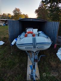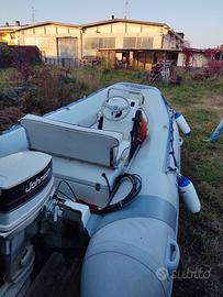 Vendo gommone lomac open 430 incluso tendalino, serbatoio carburante LT 30 , pompa di sentina, stacca batteria,scaletta di risalita in acciaio, telo PVC originale lomac , cuscineria perfetta , sempre rimessaggio al coperto,compreso carrello stradale ellebi