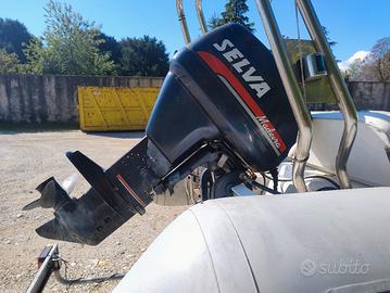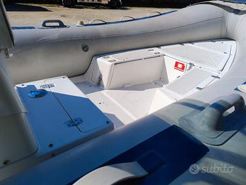 Vendo gommone di un parente anziano, in buono stato non ha perdite d aria completo di cuscineria anteriore non in foto ma esistente.,quest estate nn e stato usato ma e stato sempre al coperto con il suo telo di copertura,ce solo da darci una bella lavata casomai..completo di pompa sentina batteria e motore 40 hp due tempi potenziato,trim elettrico,roll bar completo di luci e clacson,serbatoio interno fisso, con carico benzina dall esterno,corredato di ciambella razzi giubbetti salvagente copertura in Eva calpestio colore blu se uno vuole metterlo,mezzo marinaio e tanto altro per la navigazione.ampi gavoni per tenere il materiale.motore funzionante parte al mezzo giro di chiavi girante fatta da poco.carrello ellebi revisionato e in buono stato luci e cavi nuovi,compresi i freni fatti 2024 Possibilità di vendita senza carrello euro 4800 o con carrello 5800 Scambio con moto da cross o stradale anche epoca Contatto diretto 3408707977