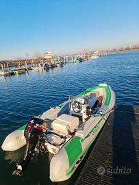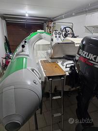 Accesoriato per la pesca 4 portacanne in acciaio,strumentazione di bordo Ecoscandaglio /gps Lowrance Elite 7 fs con la sonda 3in1. Presa 12v Batteria nuova Exide AGM 82AH Stacca batteria Elica inox passo 15,un altra elica di riserva passo13 Copri gommone per il trasporto Luci di via Doccetta acqua dolce Adatto anche per la famiglia e tempo libero,dotatto di tutti i confort,prendisole a prua,doccetta tendalino,dotazione di bordo entro 6 miglia...Regalo prodotti per mantenimento tubolari e cuscineria marca IOSSO Motore suzuki 40cv con centralina da 50cv del 2004 con pochi ore,tagliandato regolarmente e sempre lavato ogni uscita.Carrello Ellebi con gomme nuove, ruota di escorta....Prezzo legermente trattabile.Scrivetemi solo se realmente interessati.Grazie