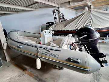Vendesi Gommone Lomac 475, del 1999, sempre tenuto al riparo in capannone e risciacquato con acqua dolce dopo ogni utilizzo, tubolari in buone condizioni con valvole in tenuta, cuscineria completa con allungo per prendisole anteriore. Monta motore Tohatsu del 2019, 40cv con pochissime ore di navigazione, circa 40, praticamente nuovo, con staccabetteria, serbatoio benzina con presa esterna.