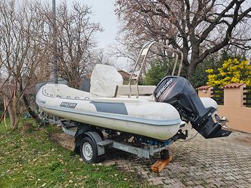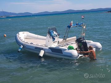 gommone Master 630, anno 2014, completo di tendalino, copri console, GPS, profondimetro, copertura completa: tendalino, doccetta esterna a scomparsa, scaletta a scomparsa, cinghie di alaggio, 2 batterie nuove 2024. Motore fuoribordo Mercur y 115 cv 4 tempi con 190 ore motore. Carrello Tecnitral basculante. Manuale proprietario. Il tutto usato mesi estivi per 5/6 anni. Astenersi perditempo NON SI ACCETTANO PERMUTE O "te daro'". Possibilità posto barca.