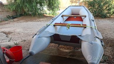Causa inutilizzo, vendo Suzumar MT 360 con chiglia gonfiabile e pagliolo in alluminio. Perfetto per pesca o come tender per barca. Accessori inclusi: Pagaie originali Gonfiatore Telo coprigommone originale Carrello da cantiere con pneumatici nuovi (mai usati). Buone condizioni. Prezzo 850 € trattabili Solo se interessati..
