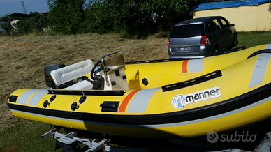Splendido gommone Mariner 4,30 con motore Suzuki 25 cv dotazioni per le 6 miglia pompa di sentina batteria motore sempre rimessato gommone in ottime condizioni senza alcuna perdita con possibilità di carrello. 1500 euro da aggiungersi al prezzo vendita. Leggermente trattsabile.