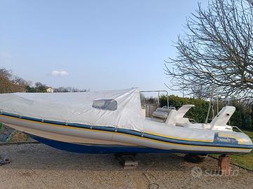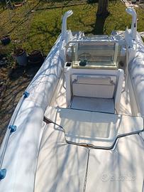 gommone marlin 20 completo di cuscineria con prendisole a prua e scomponibile anche a poppa, tendalino,telo copri consol, telo copri seduta, teli copri cuscineria, salpancora winch, tubolari senza perdite, gommone autosvuotante,luci di via,pompa di sentina automatica,tromba, ecoscandaglio lowrance, VHF, bussola, doccetta,tientibene in inox, larghezza 2,60m lunghezza 6,50m completo di certificato CE con documentazione possibilità di motorizzazione anche usato. E possibilità ritiro vostro usato