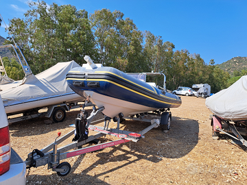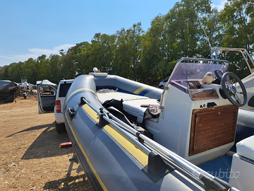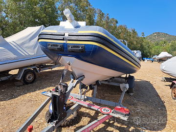 Gommone 5 metri in ottime condizioni, motore Etech 40 2 tempi iniezione in ottime condizioni circa 800 ore e appena tagliando. Cavo timone e comandi motore nuovi così come la scatola timone. Tendalino e dotazioni di bordo. Rollbar con luci di navigazione funzionanti. Pompa di sentina e staccabatteria. Il carrello è stradale con scadenza revisione a maggio 2027.