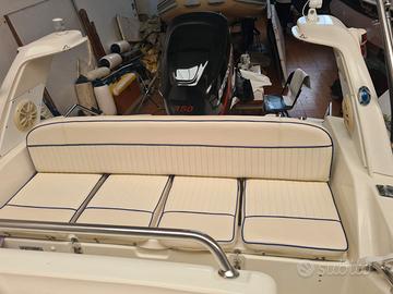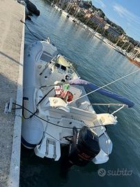 Vendo gommone Marlin 20 full optional tenuto maniacalmente (sempre in rimessaggio se non usato), motivo cambio con un 40cv. Omologato Cat. B, 12 passeggeri. Se interessati anche completo con carrello apposito nuovo (fatto 2 viaggi, mai in acqua) del 2022. Visibile in rimessaggio a Sarzana (SP), prezzo leggermente trattabile. Anno motore e gommone 2003. Motore con circa 800 ore tagliandato ogni anno.2 prendisole a poppa e a prua con prolunga. Superaccessoriato con salpa ancora elettrico, timoneria idraulica, radio con casse a prua e poppa, Ecoscandaglio, GPS... ACCESSORI: - GPS/Ecoscandaglio Simrad grande schermo con mappe Europa del 2017 - Radio Pioneer con 4 altoparlanti (2 a poppa+2 a prua) - Salpa ancora elettrico con ca. 40m catena - Gonfiatore elettrico - Strumentazione digitale con contagiri motore, livello benzina, trim motore - Pannello elettrico (doccia, luci di via, tromba, sentina) + Porta 12 V + porta USB - Tendalino originale montabile sia a poppa che a prua - Doccia acqua dolce - Pompa di sentina - cuscineria praticamente nuova - telo per sedili e consolle - 2 Batterie con commutatore - Sospendite Originali MOTORE MERCURY 150 L Optimax 6 cilidri, 150CV basso consumo: - Ore d'uso 800 ore - Elica perfetta in INOX 3 pale - Tagliandato ogni anno. Consumi irrisori - Vel. max 36 nodi - Assicurato CARRELLO SATELLITE MX181S del 2022, targato e assicurato nuovo (fatto 2 viaggi, mai in acqua) del 12/2022,venduto a parte, prezzo € 3.950,-