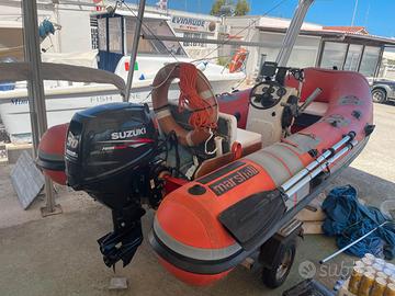 Vendo Gommone Marshall M60 mt. 4.30 con chiglia in vtr, ottime condizioni generali, no micro perdite, no riparazioni, dotato di motore Suzuki DF 30cv 4 tempi con accenzione elettrica e completo di trim elettrico, con solo 100 ore di moto (praticamente NUOVO), tagliandato e rimessato. È compreso carrello Ellebi 750 kg. omologato e con cuscinetti mozzi da poco sostituiti. Cuscineria nuova, batteria sostituita recentemente, filtro decantatore, luci di navigazione, dotazione sicurezza, pompa sentina elettrica, serbatoio, presa 12v, ancora. Sono presenti, inoltre, n° 2 strumenti: Ecoscandaglio Raymarine e GPS Garmin. Praticamente il gommone è pronto per il mare. Per informazioni Enzo 3338192050