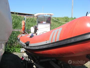 Gommone Marshall M60 , mt 4.20 , chiglia in vtr ,consolle di guida , panca posteriore e seduta anteriore consolle , gavone di prua per ancora , rollbar con luci , motore Johnson 25 , accensione elettrica , batteria , carrello ellebi non omologato .
