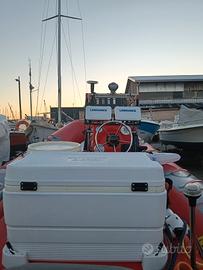 TENUTO MANIACALMENTE NESSUNA MICROPERDITA MAI ANTIVEGETATIVA ULTRA ACCESSORIATO 2 x LOWRANCE HDS 7 LIVE interconnessi con sonde 3 in 1 + TM150, 6 porta canne orientabili in acciaio, due in plastica da riposo. Vasca vivo igloo 48 lt, Motore di prua 65 lbs Watersnake con modulo aggiuntivo gps e batteria al litio dedicata, doppia batteria 65ah , doppio serbatoio carburante 24 LT cadauno, cuscineria nuova, Pompa sentina esterna per vivo, pompa autoclave interna. Finto tek 3M sul calpestio disegno e taglio computerizzato. Impianto elettrico a regola d'arte. Pulsantiera con interruttori magnetotermici. Telo copri gommone appena comprato 3M.Tenuto Motore Mercury 40 CV 4 tempi del 2020 con 500 ore di moto sempre tagliandato da concessionario. Carrello omologato Ellebi trailer 750kg con ruotino elettrico e batteria 55 ah dedicata. Possibilità posto barca. Rimessaggio pagato fino a fine anno. Visibile all' interno del porto di Bari Poco trattabile astenersi sognatori e perditempo
