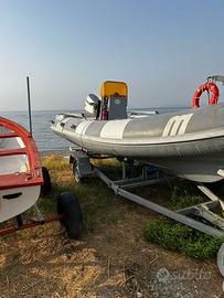 gommone Marshall mt. 5, con motore Honda HONDA BF40A4 cv 40/60 rifatto anno 2023 consumi davvero bassi e ottime prestazioni, impianti nuovi 2023, carena originale. Il battello è munito dei seguenti accessori : scaletta, impianto boss nuovo, pompa di sentina, batteria, stacca batterie nuovo , prese usb, plancia con comandi, tendalino, ancora, cime etc. presenti e valide tutte le dotazioni di sicurezza. tubolari con perdite da sistemare per questo prezzo E. 3.500 leggermente trattabili. Possibilità di carrello omologato perfetto ellebi €.1.600
