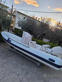 Gommone Marvel 570 anno 2008, lunghezza fuori tutto 6 metri, in buono stato generale, sempre mantenuto con cura. Motorizzato con Suzuki DF40 del 2019, con 450 ore di utilizzo, sempre regolarmente tagliandato presso concessionario ufficiale. Motore affidabile, perfetto per uscite giornaliere, pesca o relax. Dotazioni e accessori inclusi: Idroguida nuova (2025) Scaletta in acciaio inox Cuscineria completa, incluso schienale seduta di poppa Tendalino nuovo (ancora imballato) 9 porta canne (ideale per pesca) Doppia batteria Stacca batteria Doccetta acqua dolce Telo copri gommone Pompa di sentina Bussola Ecoscandaglio Dotazioni di sicurezza entro le 6 miglia Ancora Mezzo marinaio ⸻ Condizioni: Gommone pronto all’uso, ideale sia per uscite in famiglia che per appassionati di pesca. Finanziabile in comode rate. Visionabile presso Nautica Gabbiano di Pescara.