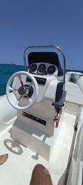 Master 540 anno 2019 come nuovo, recipiente benzina 70 lt, recipiente acqua 60 lt, con motore fuoribordo Yamaha 40/70 modello F40GETL con solo 242 ore di uso, sempre tagliandato da Yamaha Frenomar Palermo, completo di: doccetta, ecoscandaglio Lowrance HDS5, roll-bar con tendalino incorporato lungo dal roll-bar alla consolle, ancora e 7 m di catena nuove e 50 m di cima, faro con luci led, 4 giubbotti salvagente nuovi, mai usati, più 2, dotazione entro le 6 miglia, tavolino, copri gommone, pompa gonfia tubolari, estintore, due batterie nuove appena montate con garanzia 2 anni, pompa di sentina, a richiesta parabordi e invasatura.
