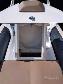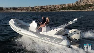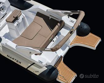 MASTER 699 GP Caratteristiche tecniche: Lunghezza 6,90 con plancetta 7,45 mt Larghezza 2,74 mt Dimensioni abitacolo 6,75 x 1,75 mt Diametro tubolari 0,57 mt Compartimenti 6 Potenza max 250 hp - 184 kw - gambo xl Numero persone max 12 Peso a secco 800 kg Omologazione CE Cat. C Accessori in dotazione Console allestita con parabrezza - Corrimano - bussola - Tromba - Volante - Pannello comandi - Cuscineria completa - Musone salpancora vtr con scorrisagola - Aspiratore gas - Gamba tavolo - Tasche porta oggetti con presa usb - Pompa di sentina 1 automatica - Serbatoio benzina con blower 198 lt - Plancetta vtr mod. 699 con 1 scala inox a scomparsa - Roll bar completo di tendalino sole e luci di navigazione - Doccia completa di serbatoio acqua (60 lt ?ex) - Seduta lombare - Pannello copri strumentazione interno console standard (tenda o forex) Motorizzabile con motore Honda Marine o Mercury Passa in sede per configurare il tuo gommone! SUPER PROMO IN OCCASIONE DI NAUTILIA, GOMMONE DISPONIBILE IN PRONTA CONSEGNA, VISIBILE IN SEDE PASSA A TROVARCI
