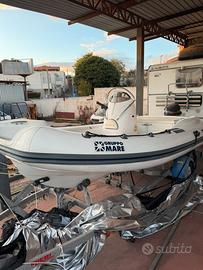 Gommone 5 metri con motore Yamaha 40/60 (senza patente) motore con circa 115 ore, rimessaggio fatto a ottobre, praticamente nuovo, il gommone è sempre stato tenuto a secco, mai anti vegetativo, mai nessuna riparazione, nessuna perdita, completo di cuscineria (un po screpolata), doccetta, radio, doppie batteria con stacca batterie, GPS ecoscandaglio, pompa di sentina, luci, dotazioni di bordo entro 3 miglia, carrello Ellebi omologato con libretto, doppio libretto originale per il motore e doppia chiave, documenti originali gommone, pronto all'uso, nessun lavoro da effettuare.