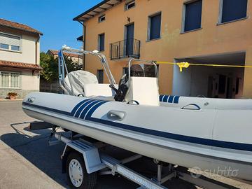 Vendo Gommone rifatto nuovo mt 540 accessoriato con tutto .Autoradio tendalino , cuscineria, doccina, navigatore nuovo compreso parabordi nuovi , ancore ecc Motore MERCURY 90 CV SALT WATER ULTRALOV. 2tempi come nuovo . carrello SIMACAR revisionato come nuovo. Tutto compreso euro 7500. No perditempo.
