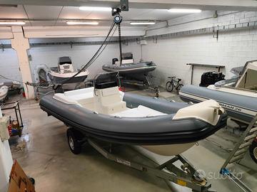 Gommone mt. 6 Accessoriato con: Musone di prua Plance di poppa Prendisole con cuscineria e prolunga Serbatoio Carburante lt. 90 Serbatoio acqua con autoclave e doccia Timoneria Visibile a Cicagna (GE) Tel. 347-0860273