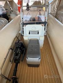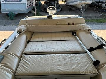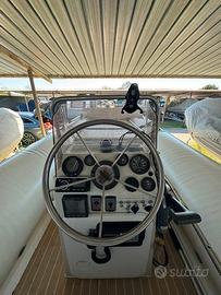 Gommone Nautica Pennati Prestige Ranger 555PR anno 1992, lunghezza 5,55 metri, larghezza 2,3 metri, carena a catamarano, super accessoriato: carena rinforzata e intercapedine iniettata con schiuma poliuretanica motore Evinrude ETEC 90HP anno 2013 con eliche da 13, 15, 17 e 18 (raker) pollici power lift tubolari da 60 cm di diametro rifatti nel 2021 con tessuto originale Pennel e Flipo 1600 denari verricello salpaancora Quick con contametri ancora Rocna con 5 metri catena e 50 di cima serbatoio maggiorato 160 litri rollbar con scaletta laterale tendalino a copertura totale pagliolo rivestito in finto teak strumentazione originale completa motore ausiliario 4HP impianto radio Fusion VHF serbatoio acqua con doccetta gavoni con aerazione naturale cuscineria completa con ampio prendisole a prua sedile di poppa trasformabile in prendisole gonfiatore elettrico fisso frigo portatile Waeco a compressore batteria motore Optima e batteria servizi al Litio del 2025 impianto elettrico con cavi stagnati e terminali carrello Ellebi con winch frenato e 3 ruote di scorta ricambi e lubrificanti vari e elica di prova Il tutto in perfetto stato di manutenzione visibile nei pressi di Ladispoli - Roma. Prezzo trattabile