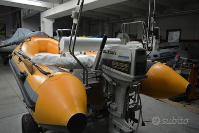 Jokerboat zodiaco 4,08 metri, motore 2 tempi 25 cavalli, accensione elettronica, dotazione di bordo completa, con luci di via e tromba, cucineria in ordine, tedalino, telo copri gommone, carrello compreso (revisione da fare)