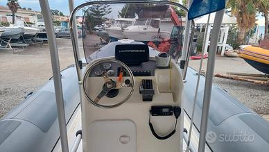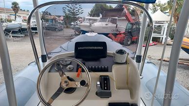 Gommone super accessoriato : T-top in alluminio con luci , ecoscandaglio e gps Humminbird helix 7 , vhf lowrance, timoneria idraulica con volante e pomello inox, pompa di sentina, pulsantiera, bussola, deviatore per doppia batteria con 2 Batterie, serbatoio carburante con relativo filtro decandatore e manometro, doccetta con serbatoio acqua dolce ecc.