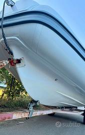 Vendo come nuovo gommone Nautilus 6.2 mt di febbraio 2025 full optional e tutto funzionante (stereo, luci, sentina, contagiri, ancora, 2 batterie nuove, tech posteriore). Interni color nocciola trapuntati in tessuto ancora più resistente a sole e acqua salta. Tendalino in acciaio inox del valore di 1.5K anch’esso color nocciola. Prima antivegetativa messa a Luglio 2025. Scafo omologato per 10 persone. Motore Mercury pro 40/70 con 300h di moto perfetto. Il gommone è uno spasso, plana subito e 6/7 persone stanno comode sdraiandosi. Vendo per cambio progetto.