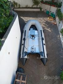 Vendo per inutilizzo gommone con chiglia pneumatica, base in alluminio, in ottimo stato, completo di 2 sedute in alluminio, remi, pompa, sacca per trasporto, Pilotina con sterzo.