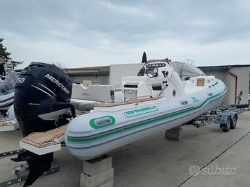 Vendo Novamares Xtreme 25 , metri 8 x 2,9 con Mercury 250 cv tutto 2017 messo in acqua estate 2018 con meno di 500 ore full optional: timoneria idraulica manetta elettronica stereo marino con 4 casse nautiche luci pozzetto led salpa ancora elettrico prolunga prendisole di poppa plancette e passavanti teak massello scaletta scaletta acciaio a scomparsa cuscineria completa frigo acciaio esterno doccetta di poppa nuova spogliatoio con oblò apribile lavabo con doccetta e wc elettrico nella consolle 2 batterie 2025 con selettore portacanne orientabili 2025 strumento Raymarine 9 pollici 2025 GPS ecoscandaglio 9 poll. vista tridimensionale tavolino di poppa teak tendalino maggiorato con chiusura posteriore e laterale, tutto in ottime condizioni. No perditempo o offerte ridicole. Trattabile fino a fine Marzo o eventuale permuta solo con gommone 6 mt recente in ottime condizioni e differenza in mio favore. Per la permuta verrà preso in considerazione il prezzo non ribassato di 45000 . Appena fatto tagliando motore , antivegetativa, pulizia , lucidatura e ceratura tubolari, pronto per essere messo in acqua.