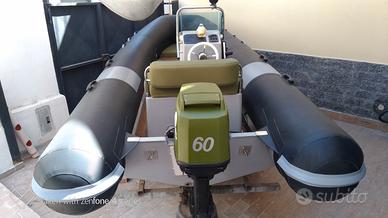 Gommone Novamarine RH 540 motorizzazione 60 cv. 2 tempi piano di calpestio in legno massello IROKO completo di tappezzeria dotazioni di bordo e telo di copertura totale gommone totalmente ricondizionato