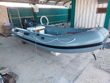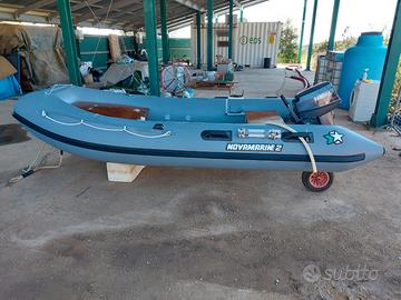 Vendo gommone novamarine RH400. il gommone è in perfetto stato ed è allestito per la pesca. Carena fatta agosto 2024 con antivegetativa Marlin 303 bianca autolivellante. Impianto elettrico nuovo e stagno con quadro elettrico a 6 utenze, luci di pozzetto, pompa di sentina manuale ed automatica con galleggiante, batteria 60ah Bosch agosto 2024. Il motore è uno Yamaha j 25 cv 2 tempi con 30 ore di navigazione ed è pari al nuovo. Guida a barra