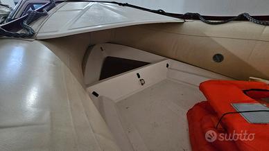 Vendo gommone Novaurania di 3,90 metri, ben conservato e con poche ore di navigazione. Sempre lavato con acqua dolce e rimessato a secco dopo ogni utilizzo. Lunghezza: 3,90 m Motore: Johnson 15 CV Portata massima: 6 persone Tubolari rifatti nuovi e personalizzati Vano ancora a prua integrato nella chiglia, chiuso e facilmente accessibile. Inclusi nel prezzo: Salvagente, Remi, Ancora, Bandiera, Cime, Carrello (da revisionare) Gomone pronto all’uso, ideale per uscite in mare in totale relax, pesca e tempo libero.
