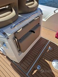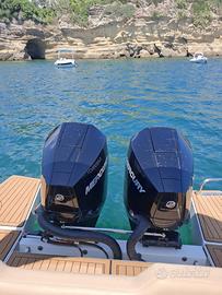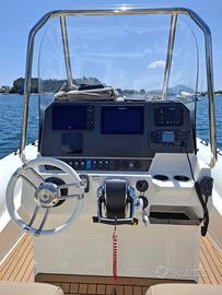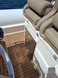 Dotazioni:Ampio prendisole a prua e poppa, T-top in acciaio inox / tendalino, Consolle con parabrezza e seduta pilota ergonomica Cabina di prua con WC marino, Impianto doccia, impianto audio, luci LED, Serbatoi acqua e carburante capienti, Plancette di poppa con scaletta bagno, GPS/Ecoscandaglio