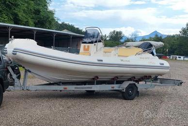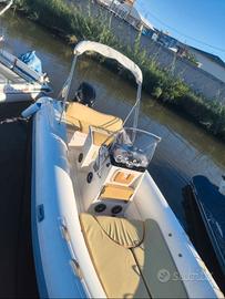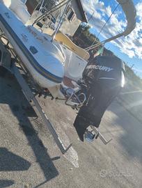 Vendo gommone Nuova jolly king 6.70 del 2009 categoria b omologato 14 persone Motore Mercury 150 CV (2009)4 tempi ore moto: 680 con manetta elettrica elica in acciaio Compreso di carrello "Spoleto rimorchi" revisionato a settembre di quest'anno 1 asse 15 quintali gomme nuove,verricello elettrico, manuale Motore sempre tagliandato Gommone tenuto in buone condizioni senza alcuna perdita ed è dotato di: Tendalino completo da poppa a prua e tenda nautica per campeggio chiusura totale Copri motore/elica Copri gommone per ormeggio Ecoscandaglio Garmin striker vivid 7sv Impianto stereo con 6 casse,sub e amplificazione della fusion 2 batterie da 100 con 1 anno di vita Serbatoio acciaio 300 LT Serbatoio acqua dolce 70 LT Ancora con catena in acciaio inox Dotazioni e fuochi in corso di validità Ormeggiato sempre coperto Vendo per passaggio a categoria superiore