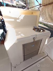 Anno: 2021 Lunghezza: 6.85 metri Larghezza: 2.95 metri Pescaggio: 0.45 metri Dislocamento: 1350 kg Portata persone: 14 Motorizzazione: 1 x 225HP - Yamaha F225NCB Trasmissione: Fuoribordo Anno motori: 2024 Ore di moto: 383 Carburante: 300 litri Acqua: 60 litri Velocità di crociera: 24 nodi Velocità massima: 30 nodi DESCRIZIONE Prince 24 Comfort del 2021 in ottime condizioni, sempre tenuto al coperto. Scafo di 6,85 m con tubolari in perfetto stato e coperta completa di rivestimenti, prendisole e dinette. Motorizzato Yamaha 225 V6 4.2L, con manutenzione regolare e plancette di poppa con scaletta inox. Impiantistica ordinata e gavoni ampi su tutta la coperta, facilmente accessibili. La console centrale è equipaggiata con volante, parabrezza con tientibene inox, strumentazione Yamaha digitale, display multifunzione, VHF e comandi elettronici. A bordo sono presenti frigorifero, lavello, verricello salpa-ancora, impianto elettrico completo, luci di navigazione e ganci di ormeggio. Tutti i vani sono puliti e asciutti, con stivaggi profondi a prua e poppa. Possibilità di acquisto del relativo carrello. Il gommone verrà consegnato pronto all'uso. ALLESTIMENTO TECNICO E DI COPERTA Allarme motore, Ancora, Autoclave, Batterie, Doccia esterna, piattaforma: Piattaforma, Pompa di sentina automatica, Pompa di sentina elettrica, Presa acqua banchina, Rollbar, Salpa ancora elettrico, Scaletta da bagno, Supporto motore fuoribordo, Tavolo in pozzetto INTRATTENIMENTO Radio AM/FM, Stereo STRUMENTAZIONE ELETTRONICA E DI NAVIGAZIONE Bussola, Comando motori elettronico, Computer di bordo, Radio VHF TAPPEZZERIE Cuscineria completa, Tendalino