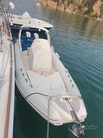 Nuova Jolly Prince 25 con 2 Evinrude G2 HO 150CV 230 ore con manutenzione ufficiale e ancora in garanzia fino al 2029. Manette elettroniche. Consumi molto bassi. 3 batterie nuove 2025, wc marino elettrico, cuscineria completa, Chartplotter, tendalino copertura fino a prua, doppia doccetta a prua e a poppa, lavandino e cucina, frigorifero, verricello elettrico con contacatena, seadeck a poppa, tavolo per dinette di poppa. Battello 2016. 230 ore totali.