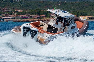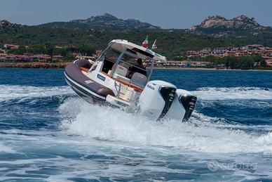 Offerta Centro Nautico Lignano per un nuovissimo gommone Joker Boats 35 Clubman con 2 motori Honda Marine BF350 Total White, colore tubolari a scelta, completo di accessori sta cui: Casse audio nr. 6, Carica batterie 12V, 4' AMP con presa e cavo banchina, Certificato CE, Colore Carena, Consolle con parabrezza, Cuscineria prendisole e sedili di guida, Ganci per sospendite, Ganci sci, Gonfiatore elettrico, Impianto doccia, Kit riparazione, Luci di navigazione, manuale utente, pagaia con mezzo marinaio, Pannello utenze 16 funzioni, Pompa di sentina x 2, Scaletta a incasso inox, Segnalatore acustico, Serbatoio acqua 170 lt, Serbatoio carburante inox 700 lt, Blower, Tavolo elettrico, Cuscino prolunga prendisole, Tientibene in console, Verricello elettrico con ancora e catena. Cassone Guida: lavello, tagliere, frigorifero 75lt, Pattumiera.