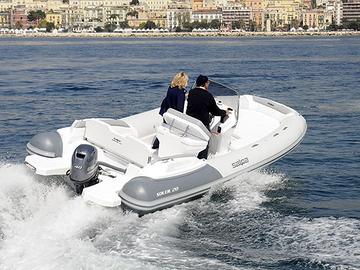 Bellissimo gommone Salpa Soleil 20 - IN PACKAGE CON MOTORE Honda BF40E, NUOVO PRONTA CONSEGNA! PREZZO 34.400 euro IVA INCLUSA! Il prezzo inserzionato è riferito al gommone Salpa Soleil in package con motore Honda BF40E. Caratteristiche tecniche: Lunghezza f.t 6.40 mt Larghezza f.t. 2.54 mt Portata Persone : 9 Diametro tubolari max : 58 cm Materiale tubolari: Hypalon Carena: Single step Categoria CE : C Peso a vuoto kg 650 (Senza Motore) Motorizzazione minima: 40/60 cv Motorizzazione massima: 140 cv Deadrise medio : 26° Accessori standard: 3 Ganci traino e ormeggio, 4 bitte in acciaio inox, bussola, consolle guida sport edition, cuscineria completa a cellule chiuse, gavone ancora con portello e rullo, gavone sotto il divano di poppa, gavoni sotto prendisole di prua, impianto elettrico completo, parabrezza con girocassero inox, plancette poppa VTR, pompa di sentina elettrica automatica, quadretto elettrico al cruscotto, scaletta mare inox a scomparsa, tromba elettrica, tubolari colore bianco con bottazzo grigio, luci di navigazione, vano porta-batteria, stacca-batteria, volante Salpa a 3 razze e gonfiatore manuale. Prezzo package euro 34.400 iva compresa con motore Honda BF40E. Package con motore: - Gommone Salpa Soleil 20 + motore Honda BF40E: 28.200 euro + iva - Gommone Salpa Soleil 20 + motore Mercury 40 PRO: 29.200 euro + iva - Gommone Salpa Soleil 20 + motore Yamaha 40 Supreme: 30.200 euro + iva - Gommone Salpa Soleil 20 + motore Honda BF100: 32.600 euro + iva - Gommone Salpa Soleil 20 + motore Honda BF115: 33.600 euro + iva - Gommone Salpa Soleil 20 + motore Honda BF135: 34.900 euro + iva - Gommone Salpa Soleil 20 + motore Honda BF150: 36.600 euro + iva Motorizzabile con motore Honda o Mercury. Possibilità di finanziamento motore a tasso agevolato in 24 rate! Disponibile anche altri modelli della gamma SALPA!